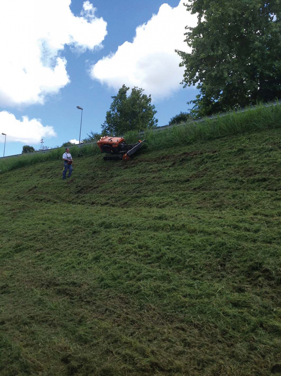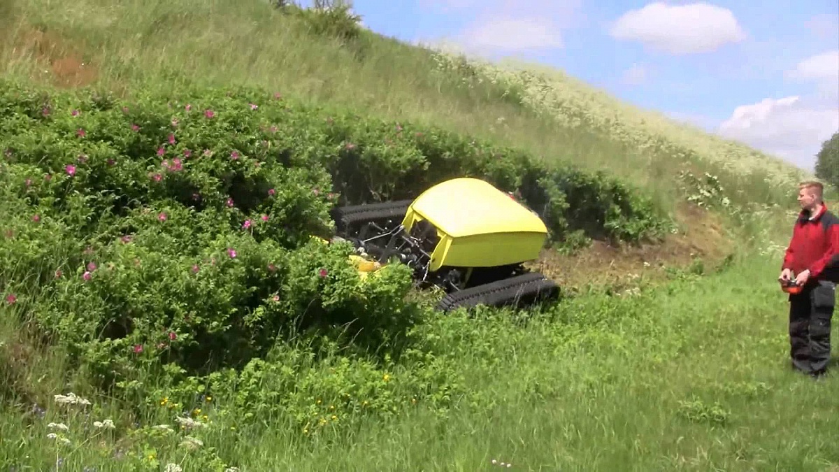 Среди большого разнообразия косилок, существует одна очень удобная и универсальная модель – косилка на радиоуправлении. Самоходная косилка — это оборудование, которое может заменить до 15 рабочих и несколько управляемых человеком косилок. Робот-косилка часто используется обслуживающими компаниями федеральных трасс, ведь ее функциональность чрезвычайно высокая. Робот-косилка способен работать на самых крутых склонах, к ней можно крепить разное навесное оборудование. Это все позволило ей завоевать особую популярность, ведь покос травы на склонах – не слишком легкая задача как для человека, так и для другой используемой часто тяжелой техники.