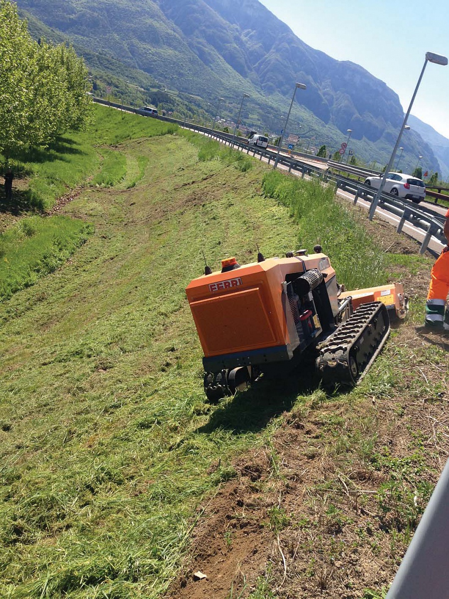 Модель FERRI ICUT 3 имеет радиус управления более чем 150 метров. Когда робот-косилка работает на склонах, то ее гусеницы способны расширяться. Это несомненный плюс, ведь так машина становится более устойчивой, увеличивается такой показатель как маневренность. А для работы на скользких и крутых склонах создана специальная опция, которая предполагает наличие четырех вариантов разных треков. Здесь также помогает наличие независимых гидронасосов, которые удерживают оборудование на склонах, гусеницы выполняют более четкие равномерные движения, исключая перегрузки и обеспечивая экономию топлива. Специально расположенные опорные катки приводят к движению задние катки, которые приподняты над землей, чтобы не было столкновений с камнями и инородными предметами. Такая конструкция позволяет роботу-косилке минимально давить на грунт во время движения. При установке разного навесного оборудования, роботы-косилки можно настраивать нужным образом, то есть можно менять поток масла, изменять уровень давления в системе.